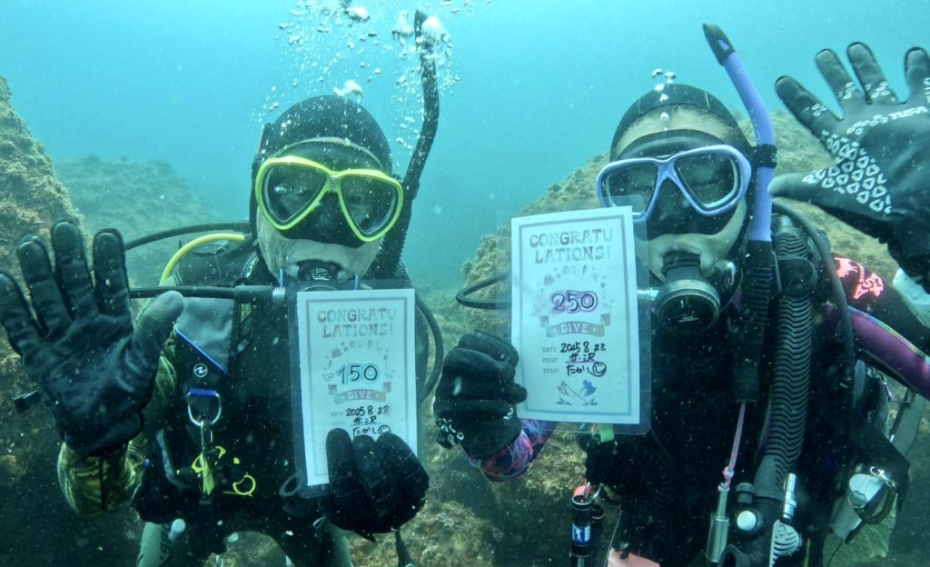 今日のダイビングでトクさんトユリアさんのお二人がメモリアルダイブとなりました!!!