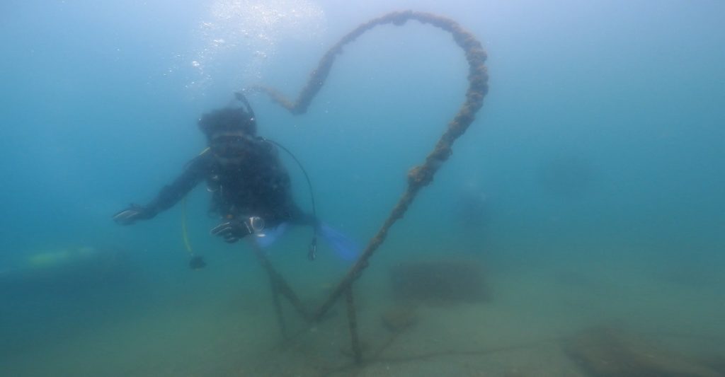 中性浮力の練習では獅子浜名物①のハート型のリング😍